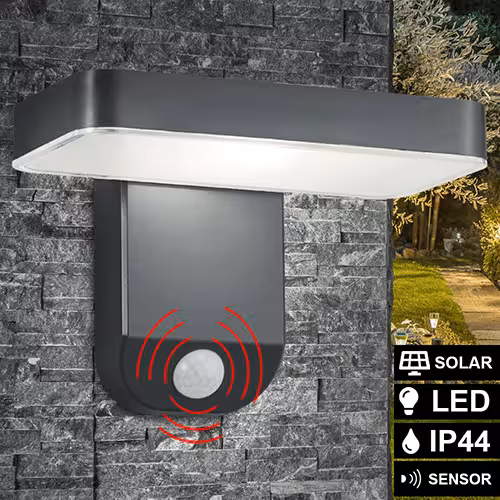 - LED Solar Wandleuchte anthrazit, Bewegungsmelder, H 21 cmLieferzeit 1-3 Werktage