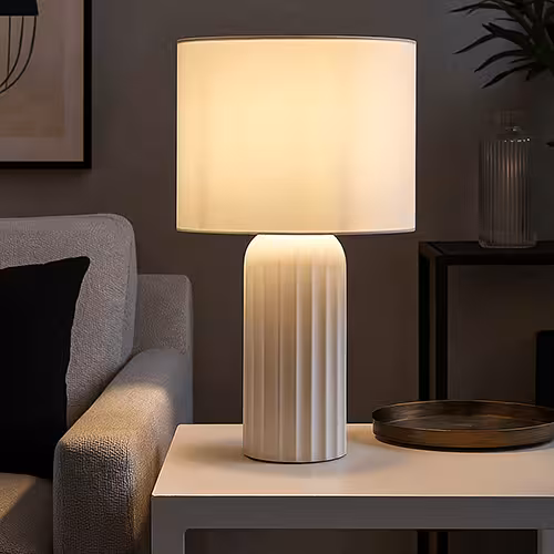 - Tischleuchte, Keramik, weiß, E27, Schnurschalter, H 36 cmLieferzeit 1-3 Werktage