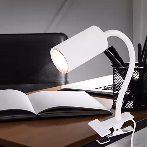 Moderne Tischleuchten verbinden minimalistisches Design mit funktionaler Beleuchtung und passen perfekt in stilvoll eingerichtete Wohn- oder Arbeitsräume. So setzen Sie zum Beispiel mit einer weißen beweglichen Klemmleuchte im Home-Office klare Akzente in einem modernen Büro und profitieren stets von fokussiertem Licht.